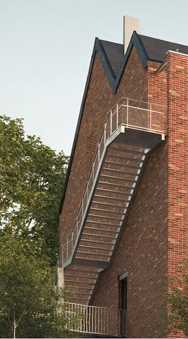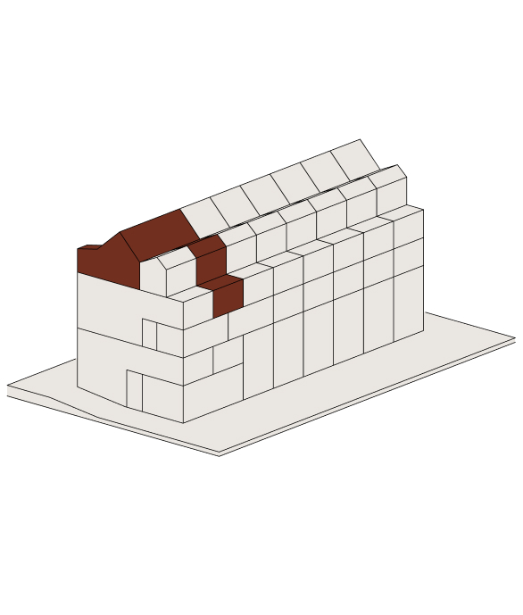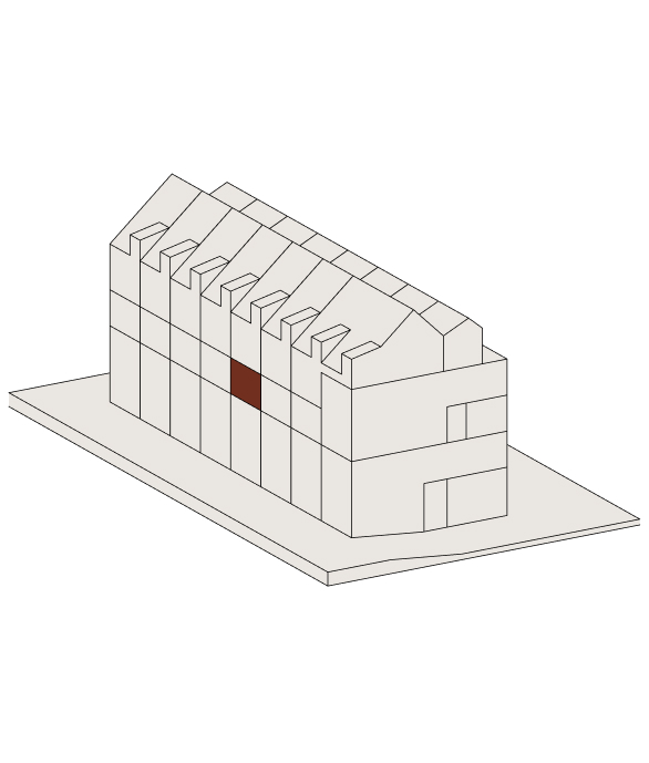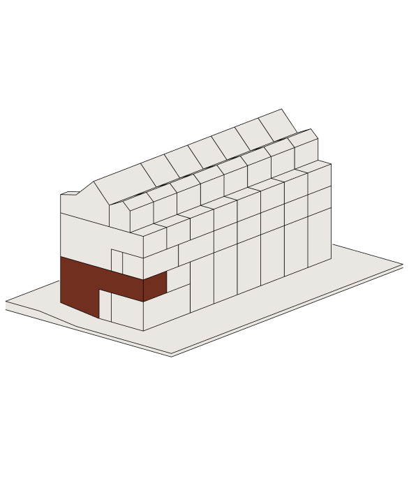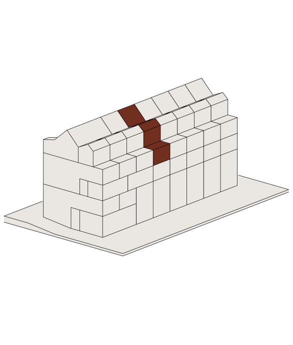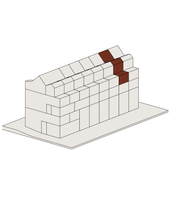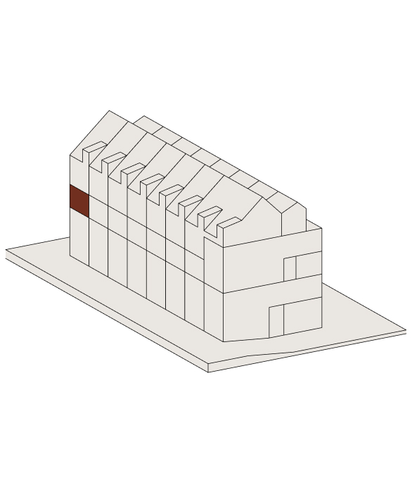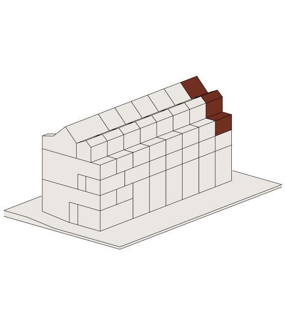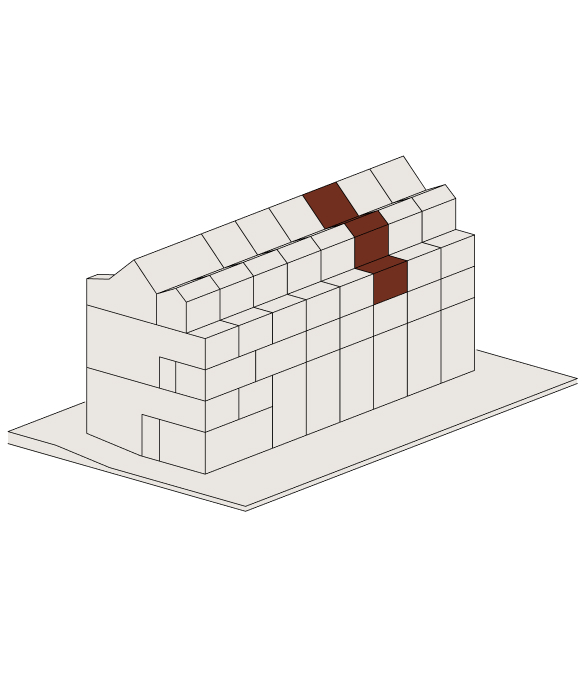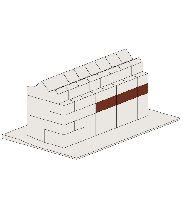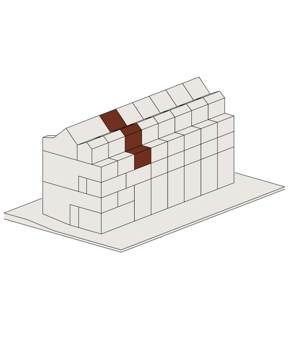 Im Attikageschoss entstehen mehrere loftartige, zweigeschossige Wohnungen mit hohen Räumen, Dachfenstern und grosszügigen Reduits. Die Wohnungen sind über einen gemeinsamen Laubengang erschlossen, der als Aussenraum genutzt werden kann.