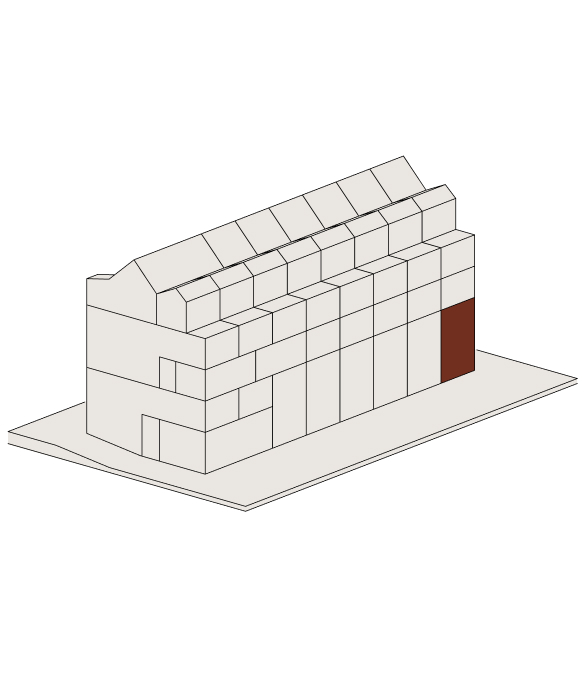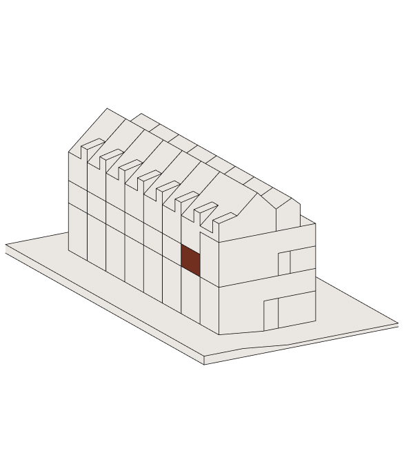 Die Fassade wird durch wiederverwendete Backsteine aus einer ehemaligen Fabrikhalle geprägt, kombiniert mit einer state-of-the-art Gebäudearchitektur. Zusätzliche gestalterische Elemente wie grossflächige Fenster oder die begrünten Terrassen unterstreichen den Charakterdes Hauses. Im Inneren verbinden sich rohe, strukturell relevante Bauteile mit nachhaltigen Materialien wie Lehmputz und hochwertigen, modernen Einbauten wie grosszügige Küchen und Bäder. Die Wohnungen bieten flexible Grundrisse, die je nach Lebensphase, Nutzungsart und Möbelierung ein individuelles Wohnambiente möglich machen.